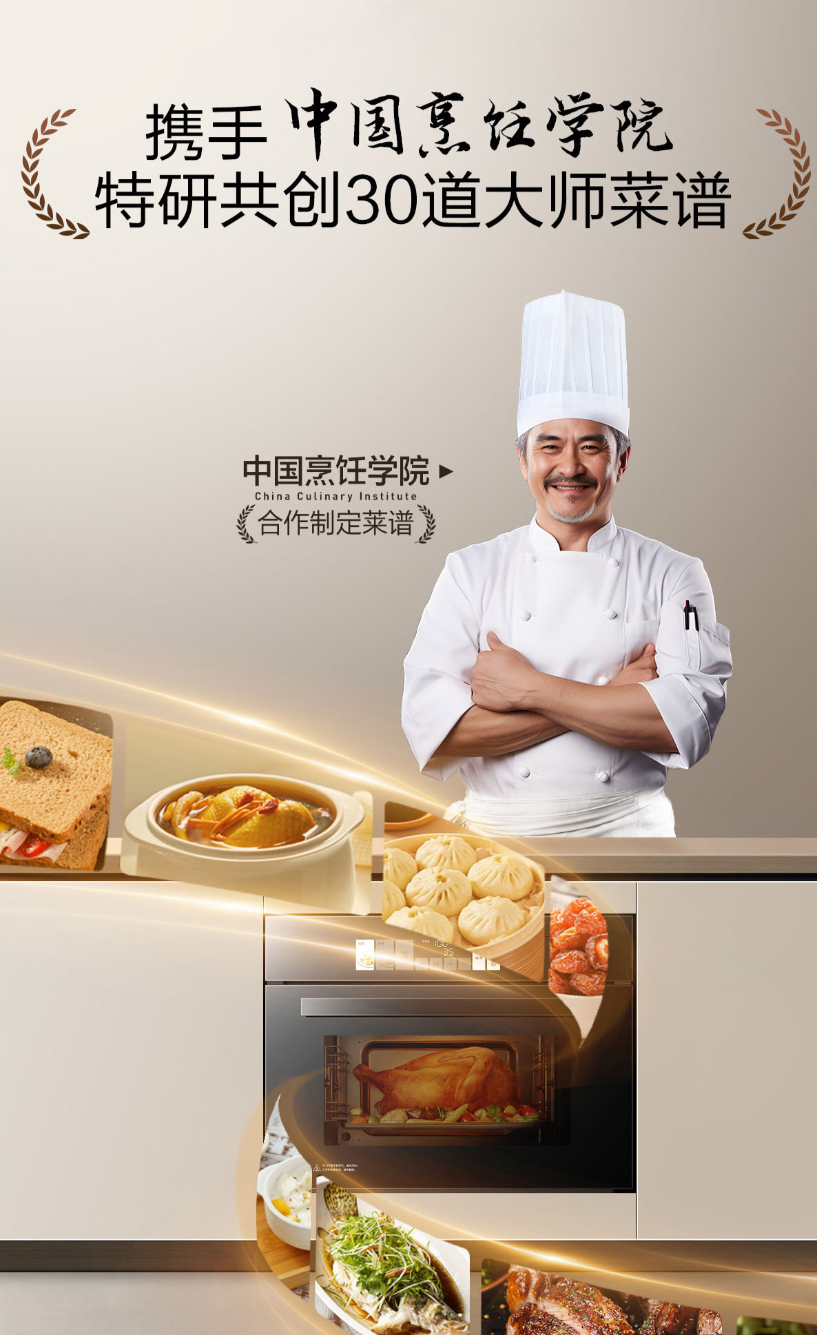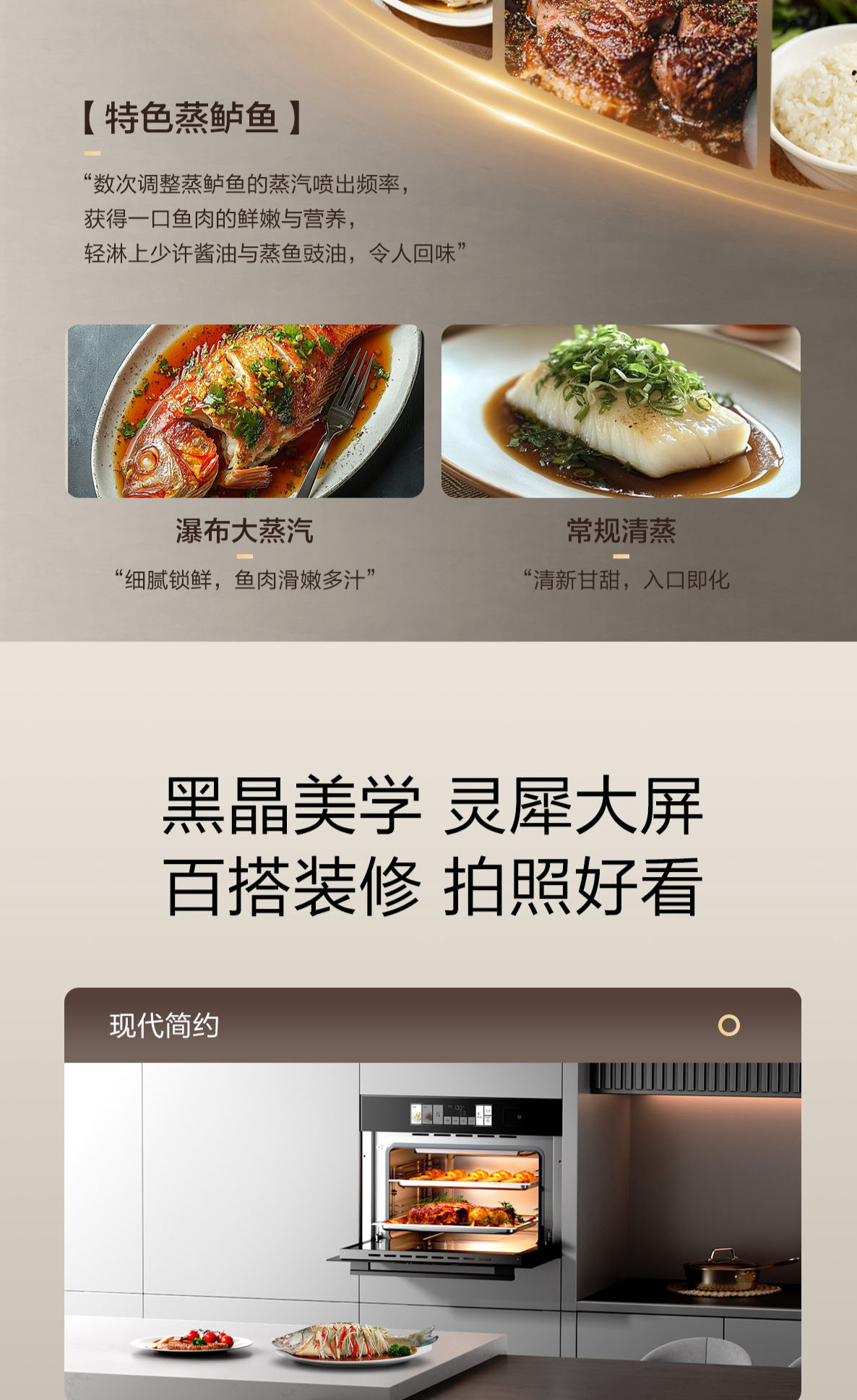 灵犀炫彩大屏,48L大容量,十二大专业蒸烤模式,上下双管烤,直喷瀑布蒸汽,全304食品级不锈钢,一键高温杀菌